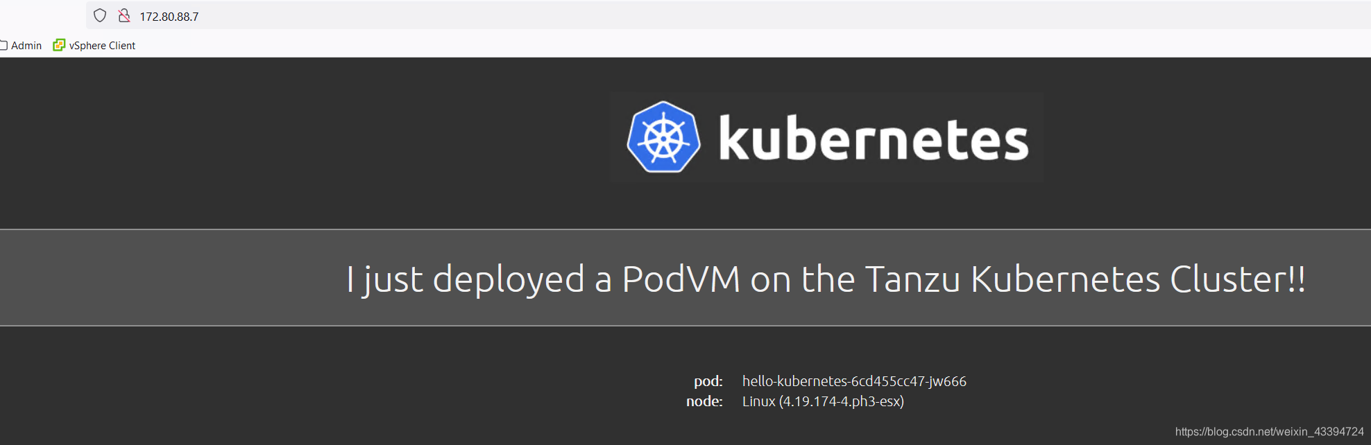 vCenter上面可以查看到本集群的control-plane VM的IP地址172.211.0.71,与vSphere Pod共用pod地址池。